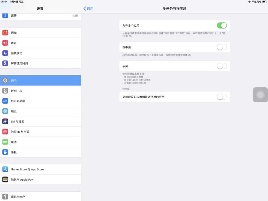 5、这样ipad pro多任务与程序坞允许多个应用就被开启了