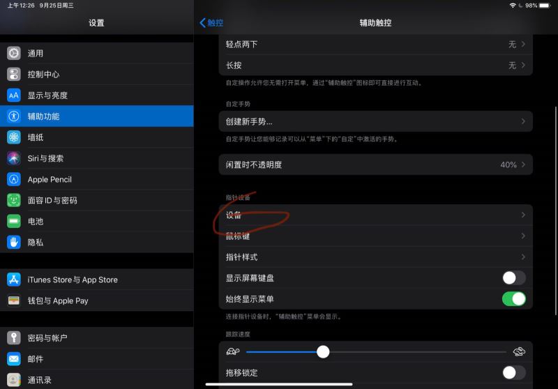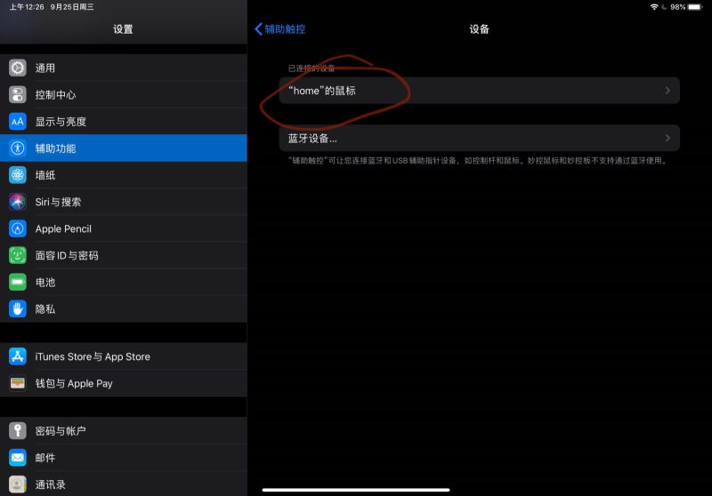 apple 在设置页面明确标注了辅助触控(鼠标)功能不支持通过蓝牙使用妙控鼠标和妙控板,我们来看看能否借助其他方法实现连接 ipad 与 magic mouse 2。