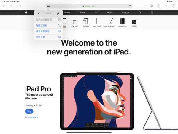 升级ipados后,safari浏览器终于支持“请求桌面网站”这一选项。开启该模式后,safari浏览器即可开启与电脑完全相同的页面,不但“横幅”完全消失,我们还能更好地运用ipad pro的这块大屏幕,网页显示效果也会更出色。