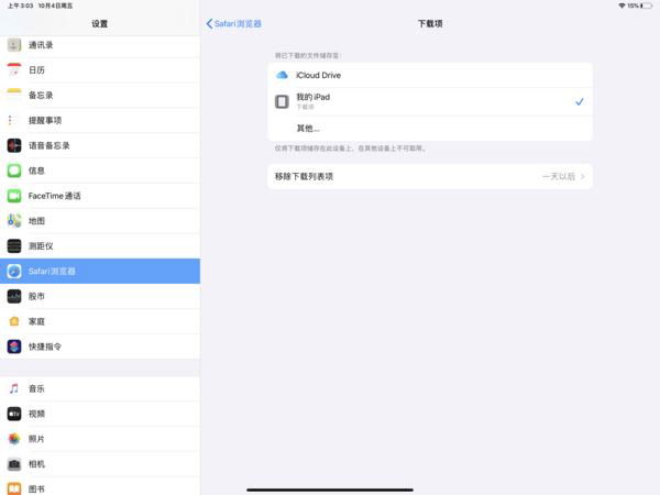 需要注意的是,safari浏览器在下载文件时,会默认将文件下载到icloud drive中的“下载项”文件夹中。但对于一些icloud云盘容量不太够的用户来说,频繁下载一定会导致云盘空间迅速占满,所以下载好的文件最好在第一时间转移至ipad pro。当然,我更推荐一劳永逸的做法,那就是点击“设置-safari浏览器-下载项”,将默认存储位置改为“我的ipad”。