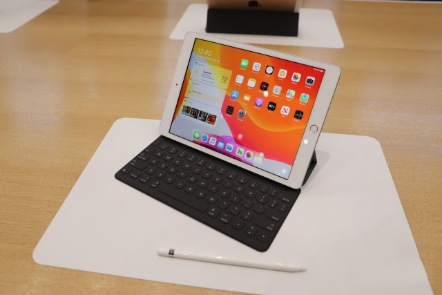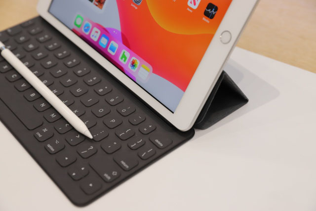 这次全新的ipad在屏幕尺寸上有所改变,采用10.2英寸视网膜屏幕,搭载a10处理器,配备smart connector接口,支持全尺寸键盘,同时,键盘也可作为智能支架使用。