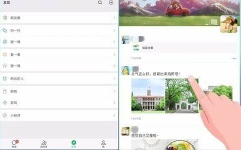 平行视界的开启方式也很简单,平时都是默认开启状态,在横屏使用支持的应用时会开启提醒,一键进入平行视界,消息和朋友圈两部分互不干扰,除了是同一应用外与分屏效果一致。
