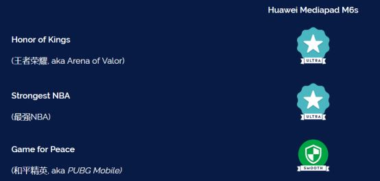 据了解,业界权威的手机游戏性能测试机构gamebench对华为平板m6高能版进行了以《王者荣耀》《和平精英》以及《最强nba》作为测试对象的测试,多款游戏拿到了ultra级别。