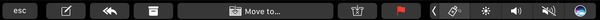 当我们查看邮件时,touch bar 会显示“转移至…”的按钮,方便用户将邮件转移至其它收件箱或文件夹。touch bar 会使用机器学习建议可能的终点。touch bar 上还有旗标、回复和删除等按钮。长按回复按钮还可以呼出额外的相关操作,例如“转发”和“回复全部”。