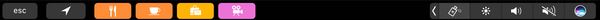 地图对 touch bar 的整合显得非常直接,首次启动会显示“我的位置”和长条搜索栏,点击搜索按钮 touch bar 就会显示各种分类的地点图标,而这些图标的颜色分类也和 ios 地图应用的一致。