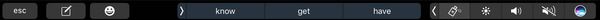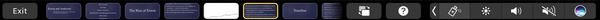 keynote 对 touch bar 的整合相当不错。在演示的时候,touch bar 会显示邻近幻灯片的缩略图,点击缩略图即可切换至该幻灯片。当演示停止后,touch bar 便会显示 keynote 的一些常用快捷键。