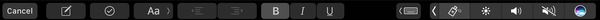 备忘录的 touch bar 会一直显示排版所需要的按钮,例如创建新的备忘录、添加待办事项、以及文本格式排列、加粗、斜体和下划线等。