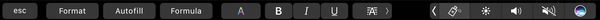 touch bar 会显示公式、文字格式化、自动填入和合并等功能。当选择某表格后,touch bar 会允许用户切换数据类型,比如货币、文字、日期或数字等。