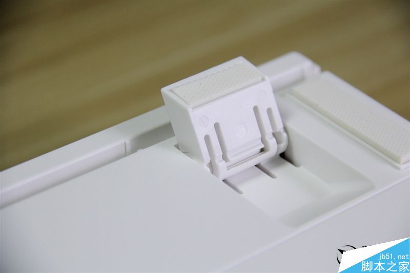 侧面可以看到键盘主体按键的倾斜角度十分贴合人体工学,而且有二段式脚架,支撑角度有两种可选。