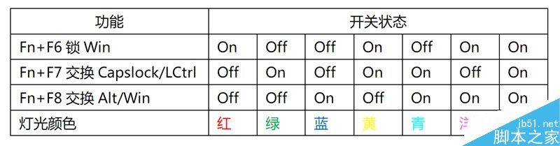 fn+f7可以交换capslock和左侧ctrl,fn+f8则可交换alt和左侧windows。
