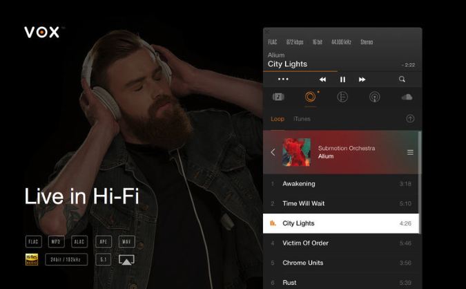 支持目前主流音视频文件格式,支持ape、flac等无损音乐格式,音质还原能力出色,受到大部分网友的青睐,对于无损音乐播放来讲,应该是mac系统上最好的音乐播放器。播放功能基本上和下面提到的dvdfab media player,不分伯仲!但是播放音频文件支持创建播放列表!缺点界面为英文。
