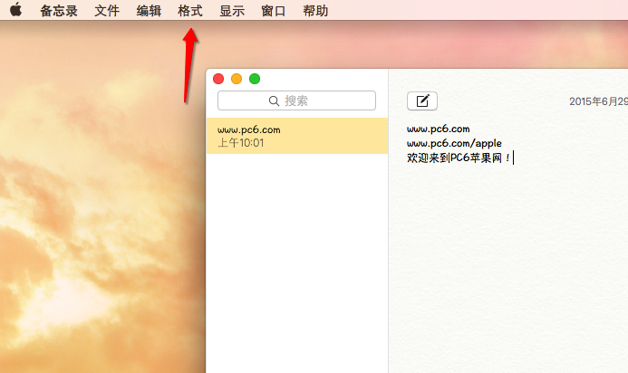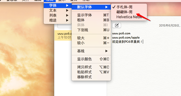 mac备忘录可以和iphone以及ipad进行无缝的对接和自动同步,是mac平台上一款非常实用的简单备忘工具,对于很多年轻的mac用户来说,并不太喜欢规矩的文字,其实mac中的备忘录也是可以更换字体的,下面pc6小编就教大家如何更换mac备忘录的默认字体。