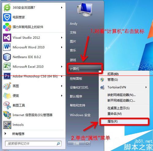 1、您首先需要开启windows允许远程连接。单击“开始”菜单,找到“计算机”右击,选择菜单中的“属性”。