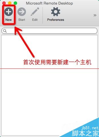 5、在打开的“microsoft remote desktop”窗口中,单击“new”图标按钮,来创建一个新的远程主机。