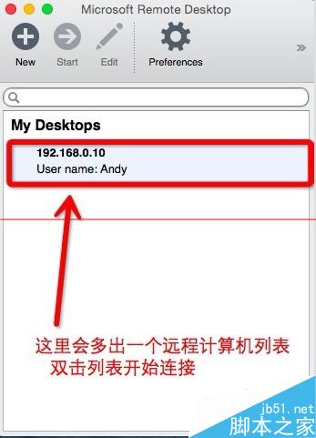 7、新建远程计算机后,在列表内就会出现了,您只需要双击就可以连接了。