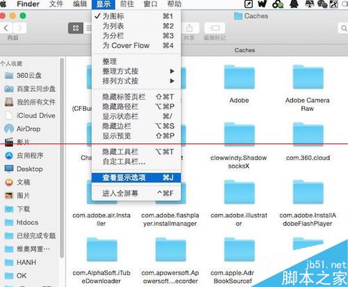 3、在caches文件夹的时候,点击上方菜单的:显示—查看显示选项(或者command+j)-在这里面把“计算所有大小”的对号点上