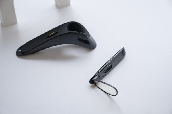 这个充电底座的设计还是值得一说的,既要便于眼镜放置、收纳、充电,又要有oppo式的优雅,最终呈现出来的这种曲线造型确实很有想象力和未来感。
