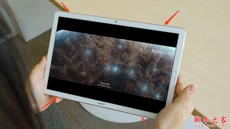 当然,画面效果只是「沉浸式影音效果」的其中一点,想要带来身临其境的观影效果,强悍的音频系统必不可少。10.8英寸华为平板m6搭载了四枚大振幅扬声器,加上四喇叭的立体声音效,效果着实震撼。