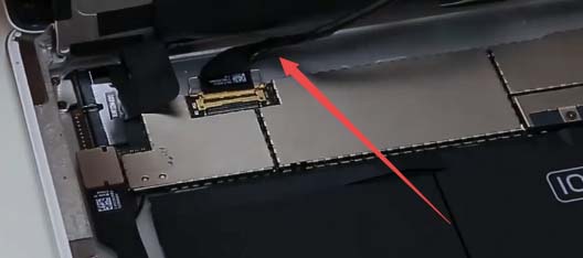 12、接下来我们就是安装电池了,先买回一个ios全新的电池放进ipad里面,然后扣上电池排线接口和主板