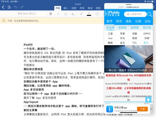 对于办公而言,处理多个文件或者处理多个软件项目是常有的事。在ipad上就需要分屏功能来实现,在原有的分屏基础上,ipados进一步升级,首先是可以将一个应用在多个窗口下打开,也就是可以同时处理两个文件,对于办公来说更加方便。