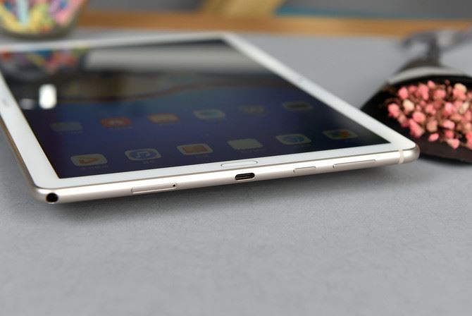 全新的华为平板m6采用了2560*1600 2k级高清屏幕,16:10的长宽比,整个屏幕采用了2.5d弧面玻璃设计,握持手感非常出色。并且采用初始横屏设计,可以说天生为影音而生。横屏时右侧是home按键,支持指纹解锁;上部是前置的800万像素摄像头,跟家人聊天、网友视频,非常实用。