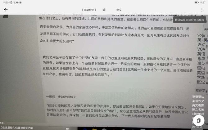 智慧视觉的翻译功能也非常强大,可以快速的进行全文翻译。实际测试翻译速度非常快,几乎是马上呈现中文内容。