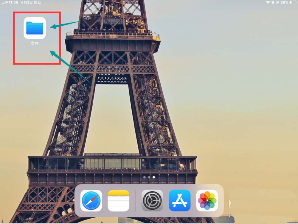 1、将ipad的界面打开,点击文件的图标,这个软件是ipad自带的。