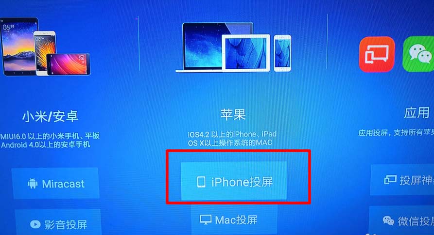 2、进入到无线投屏界面后,可以看到投屏设备的类型,点击iphone锁屏的选项进入。