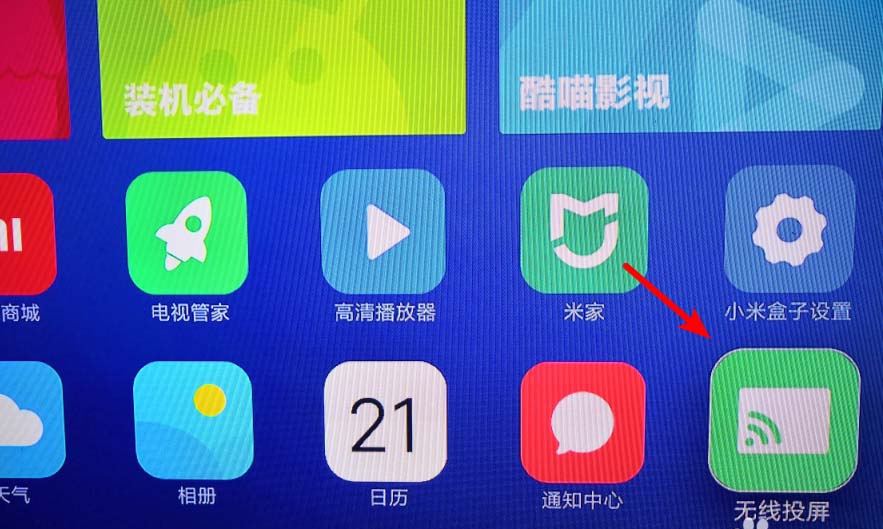 1、打开智能电视后,在电视中找到无线投屏的应用进入。
