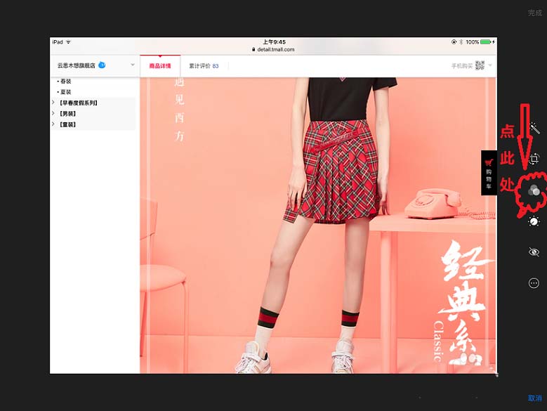 4、到这里ipad四周就会有宽黑边的框,右边纵向排列几个工具标志,点击那三个小圆圈叠加的滤镜标志。