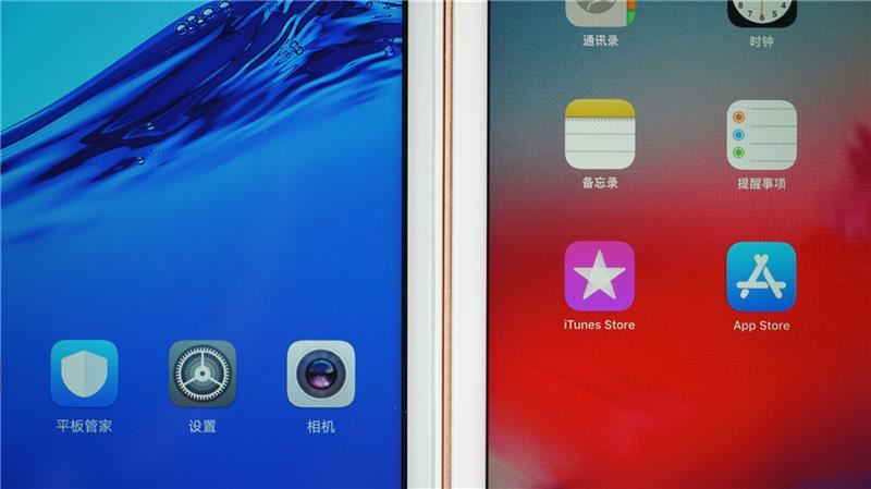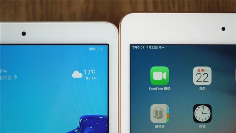 虽然8英寸华为平板m5青春版屏幕黑边略粗于ipad mini5,但左右边框的总宽度(边框+屏幕黑边),两款平板相差不大。