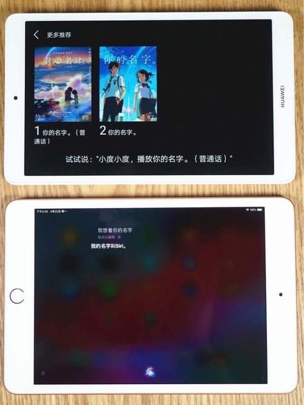 首先是语音观影,这里笔者对两款平板下达同一个指令“我想看《你的名字》” 。