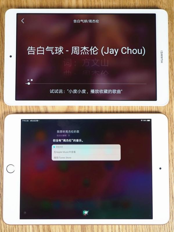 然后是语音听音乐,这里笔者对两款平板下达同一个指令“我想听周杰伦的歌” 。