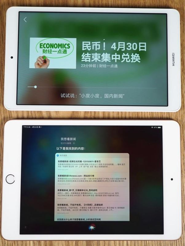 最后是语音听新闻,这里笔者对两款平板下达同一个指令“我想看新闻” 。
