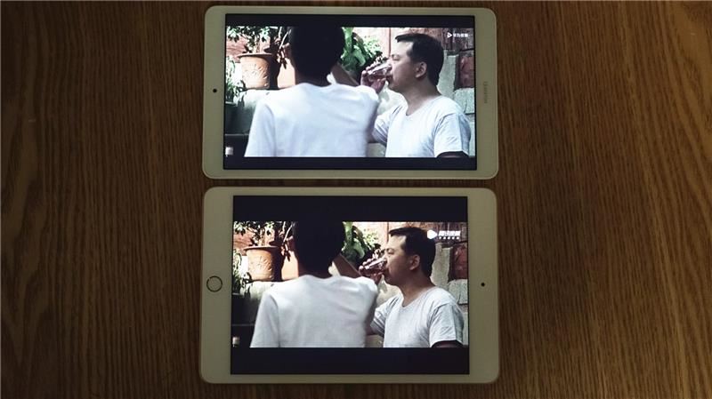 目测ipad mini 5的黑边要比华为平板m5青春版宽上一倍左右,当然如果经常看4:3的老片,用ipad mini 5看倒是非常合适。不过目前无论是视频还是直播大多数都是16:9或更长的比例,相较而言8英寸华为平板m5青春版更合适看视频。