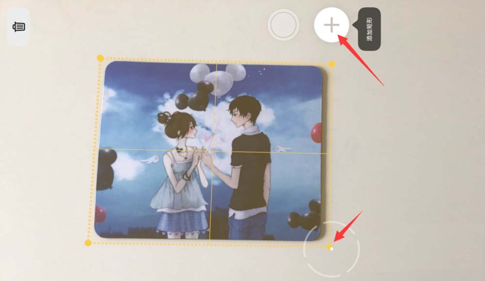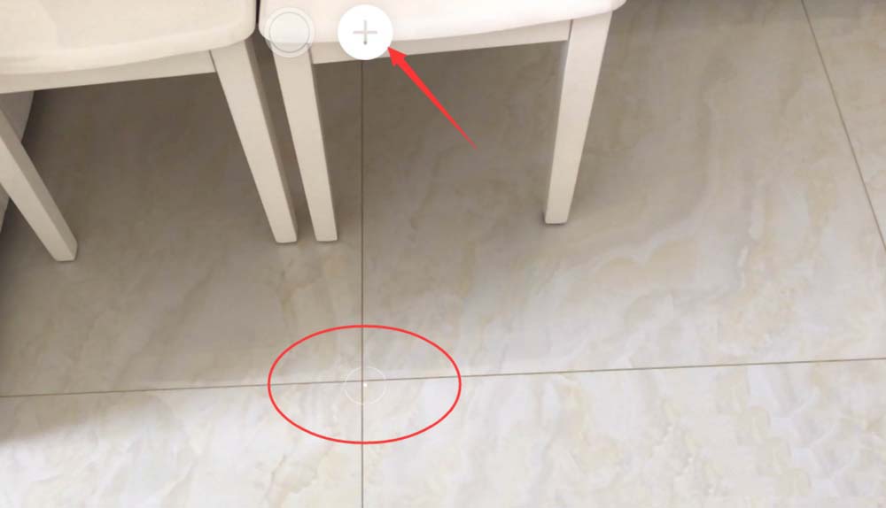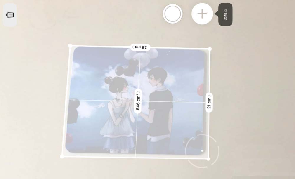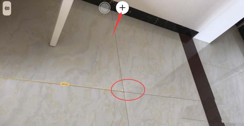 3、我们将苹果ipad的摄像头对着我们要测量的物体,注意光圈必须对准我们想要测量物件的某个起始点,然后点击屏幕上方的加号+