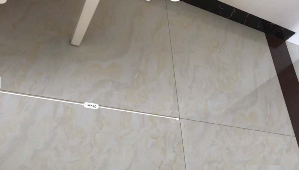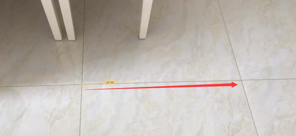 6、然后苹果ipad沿着该物件的边移动,测量仪将会实时测出光标所在位置的长度