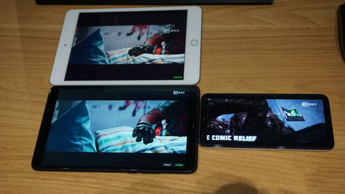 左上:ipad mini 5 左下:小米平板4 右边:小米8 播放电影《死侍》效果