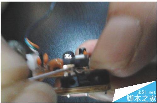 9、把铜片上的触点露出来,轻轻摩擦掉表面被氧化的