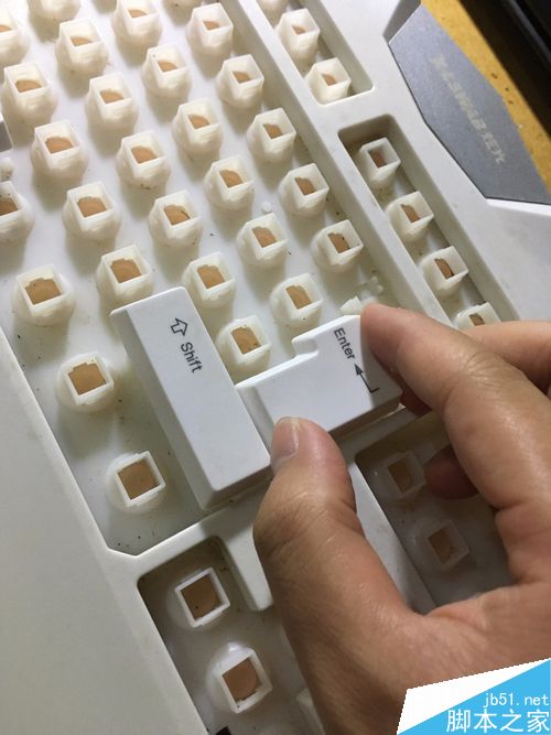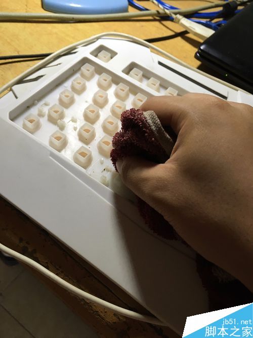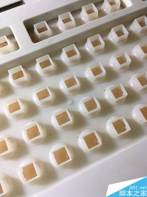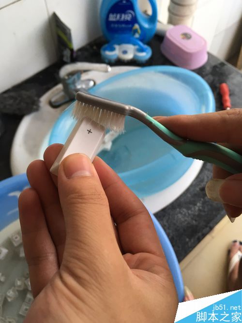 3、清洗按键,这里就可以使用刷子刷了,要一个一个的刷哦!这个工作要特别细心。我是用牙膏刷的,用别的清洁剂也可以。