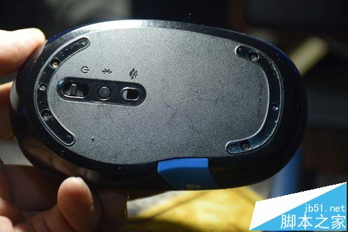 1、拆开鼠标的上下两个脚贴,就能看见四颗螺丝,这四颗螺丝是内六角,我使用的螺丝刀是wowbits电动螺丝刀的t5号头,晚上实在拍不清螺丝刀头,见谅!