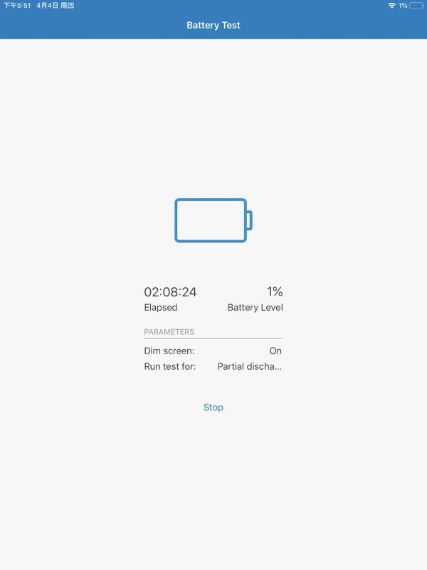 历代ipad的续航都比较强劲,这款ipad mini也不例外。设备电量剩余61%的情况下,我们开启了geekbench中自带的续航测试项目,屏幕亮度调到最高。新ipad mini最后坚持了2小时8分钟后,电量掉到了1%。这个成绩基本可以代表它在极限高压情况下的续航水平,满足一整天的重度使用,基本不成问题。