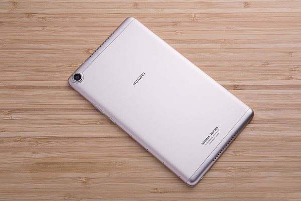 机身背部采用了金属材质,圆润的弧线从背部一直延伸到四角。左上角的摄像头周边还经过了圆形切边设计,看起来多了几分灵动感。机身背部采用了细腻的金属磨砂质地,即使是像小编一样的“手汗星人”也不用担心会留下难看的汗渍。相信细心的朋友们都注意到了,在华为平板m5青春版(8英寸)的上下,各有一排开孔,其实他就是这款平板的亮点之一:双侧立体声扬声器。