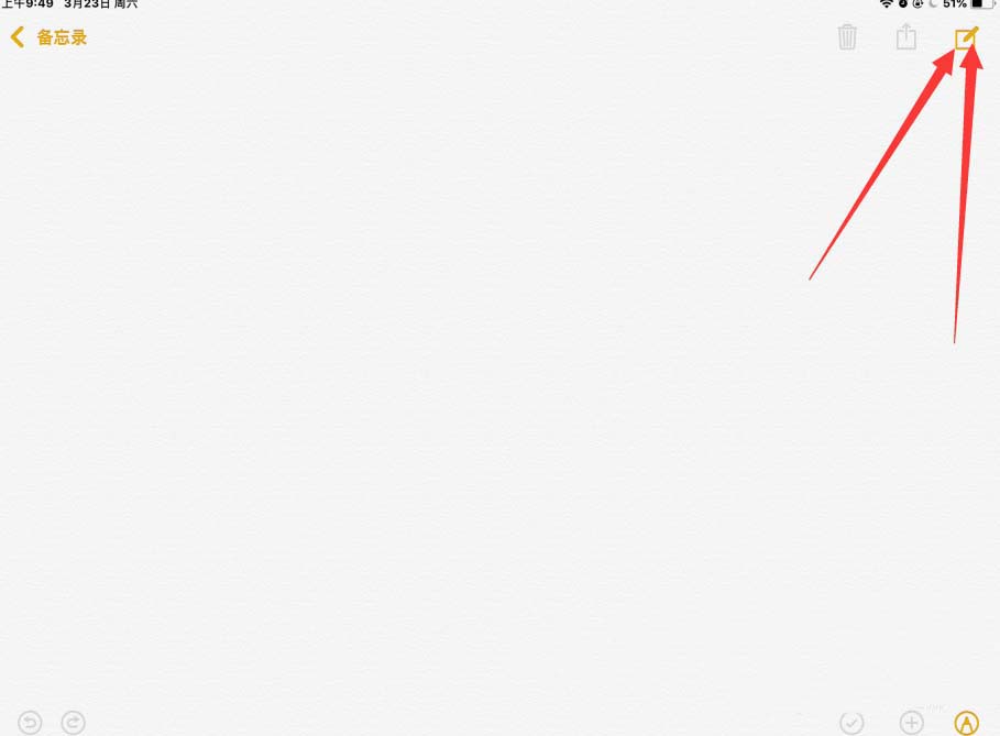 2、备忘录打开。通过仔细观察,我们找到右上角的一个小方块图标。手指点击它。
