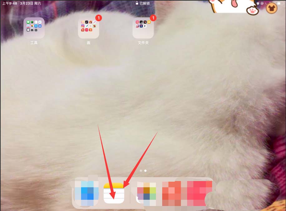 1、我们仔细观察自己的平板电脑界面,找到备忘录的图标。手指点击它。