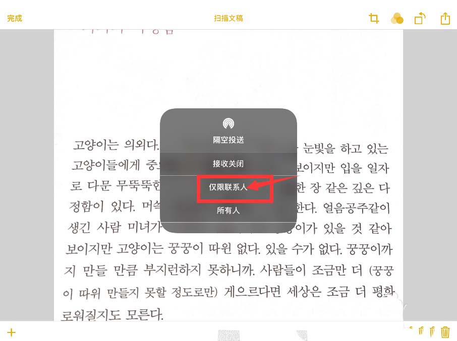 11、现在ipad上面的隔空投送就被打开了。我们就可以将我们刚才扫描的文件发出去了。是不是很简单呢?赶紧试一下吧。