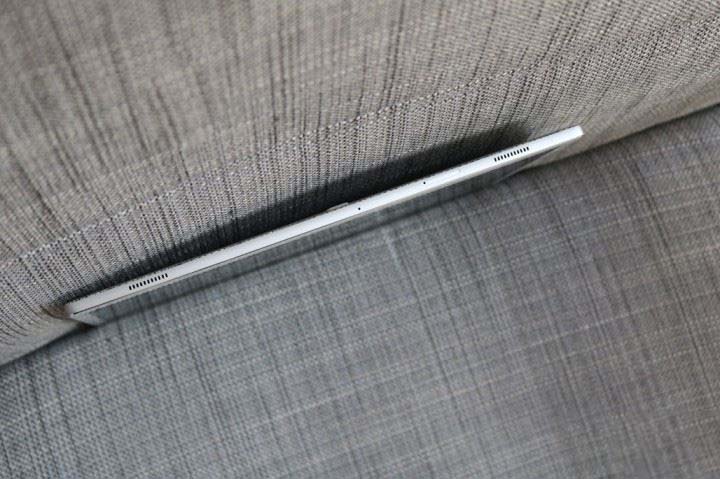 从背面可以看到整个机身的金属材质,表面采用了金属磨砂工艺,同时增强了握感。平板一直沿用金属质感的机身,这也是相比于其他材质耐久度更高以及对机身保护更到位。