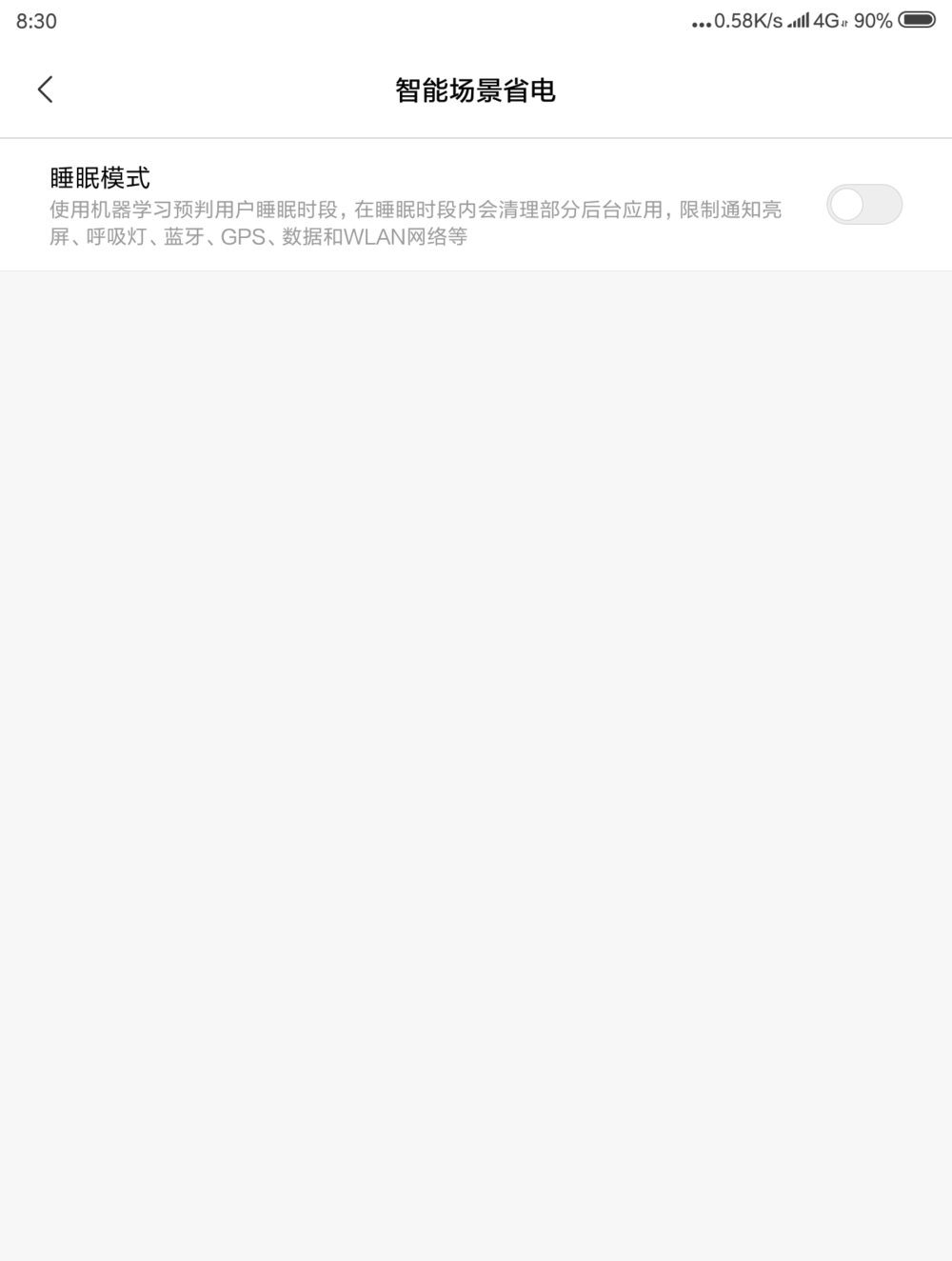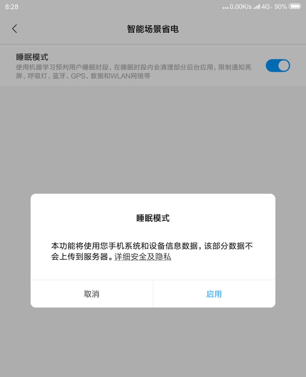 6、启用睡眠模式之后,在我们睡眠的时间段就会关闭多余的功能,这样可以节省电量