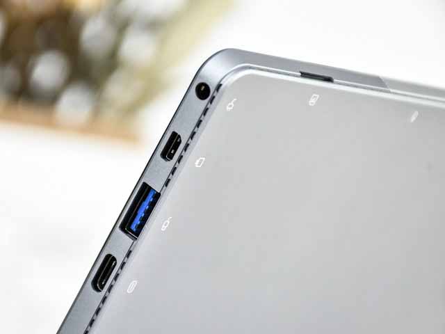 而作为一款主打办公功能的笔记本电脑,接口是否全面,也是一个非常重要的问题。这款平板拥有两个usb3.0接口、一个usb typec接口和一个mini hdmi接口,还有一个输入电压为12v-2a的dc电源接口和3.5mm耳机接口。除了这些常规的接口,台电同样提供了micro sd卡扩展接口。