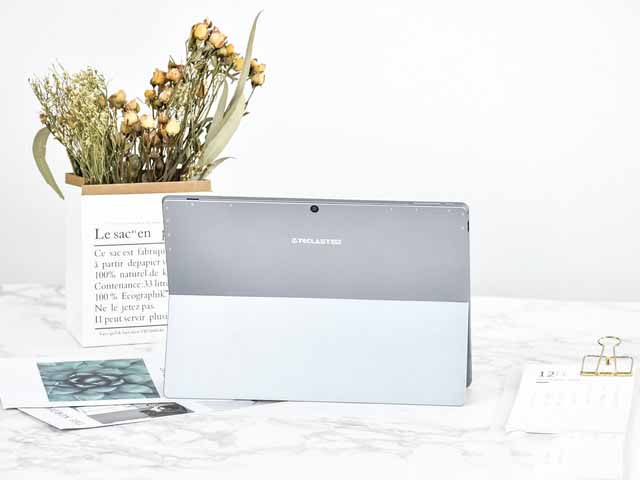 如果问我对台电x6 pro的第一印象是什么,我会说:非常像suface pro。这款平板的设计和配色都非常像suface笔记本。它同样采用了铝合金的机身背面,并加入了suface相同的背部支架设计。